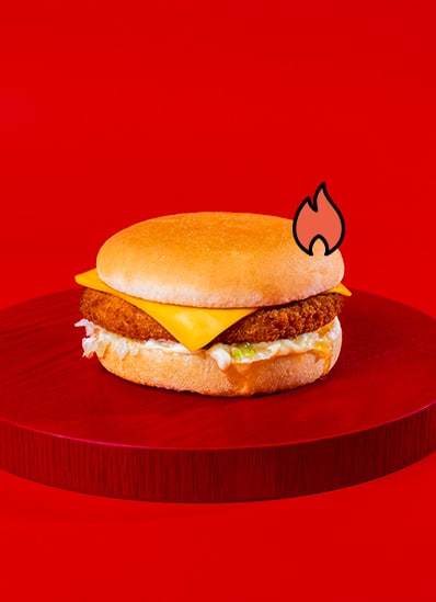 Poulet pané, pain sans sésame, sauce chili/mayo, salade, cheddar.